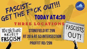 President Trump is coming to Charlottesville today, April 10th, 2026. In response, Indivisible Charlottesville is organizing three protests around the city. Please attend if you can!